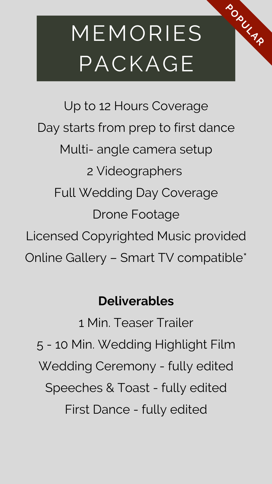 Pre-Wedding Couple Shoot - A one minute film capturing you as a couple prior to your wedding, this can be incorporated into our pre-wedding meeting, you will end up with a 45 second to 1 minute film to post online and to share with family & friends.